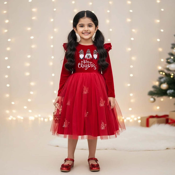 A girls red velvet dress typically features a rich, deep red hue in a plush velvet fabric that gives a soft sheen and a luxurious texture.