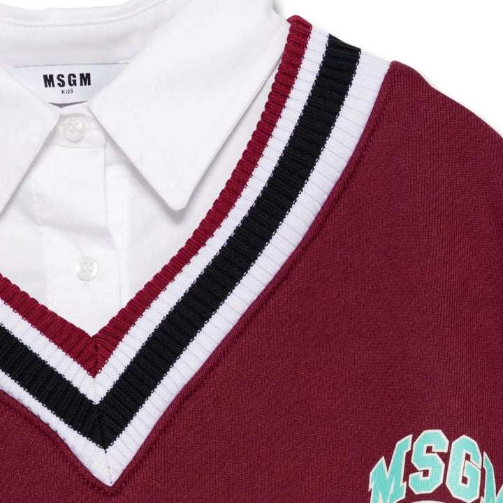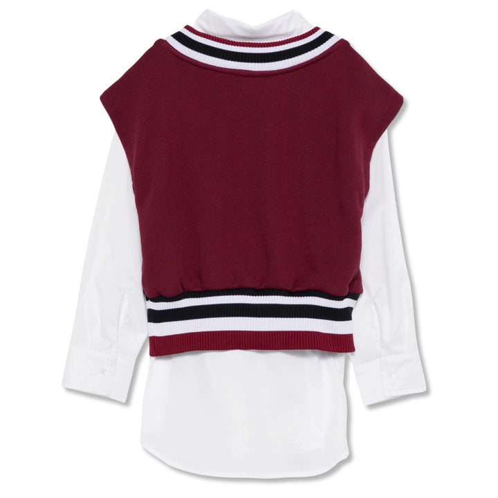 Girls Red and White Logo Print Sweat Dress crafted from soft and cozy fabric for all day comfort. Featuring a bold logo print, long sleeves, and a relaxed sweat dress silhouette, it offers a cute and sporty look. Perfect for casual outings and easy everyday styling.