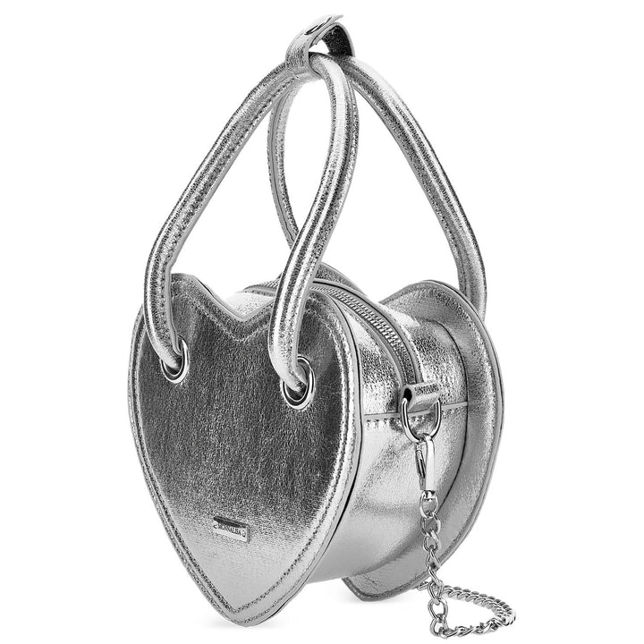 Chic and fun, this silver Monnalisa hand bag features a striking logo print, perfect for adding a stylish touch to any outfit.