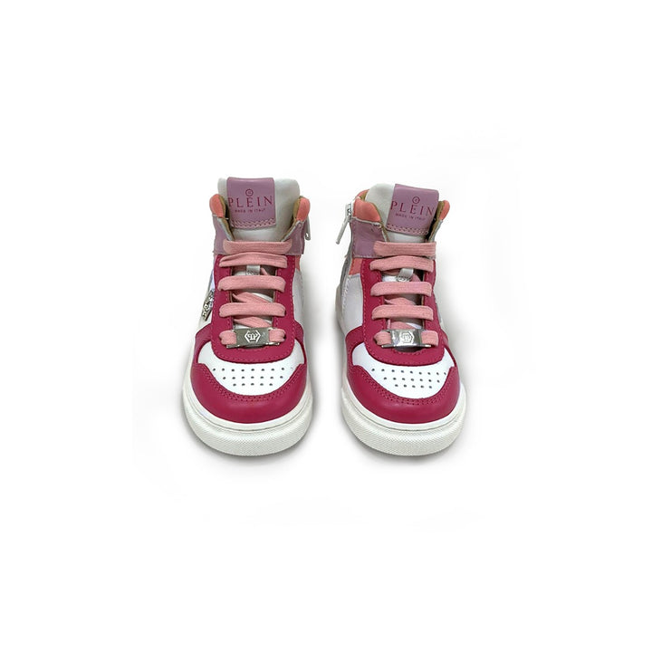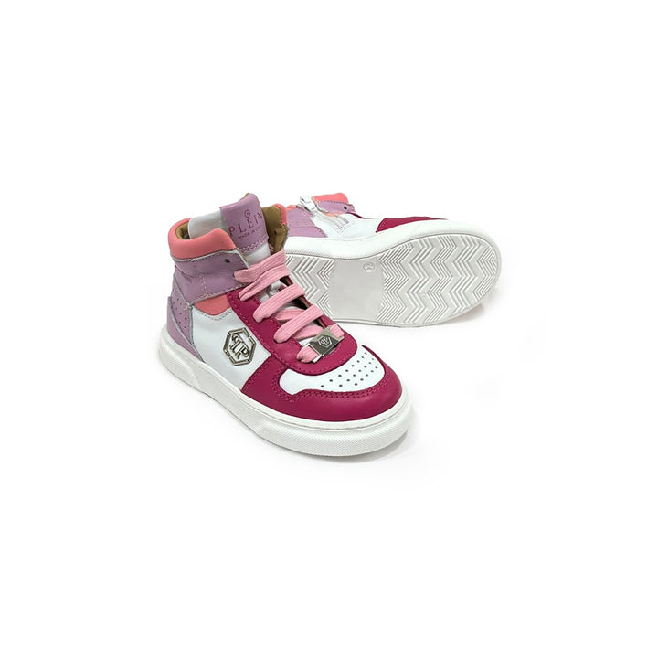 Girls White and Pink Leather Trainers