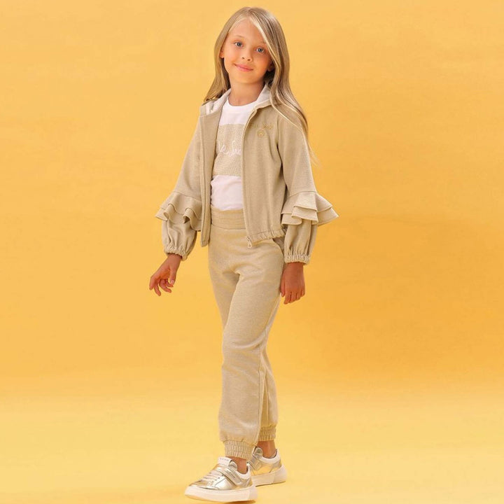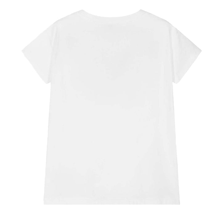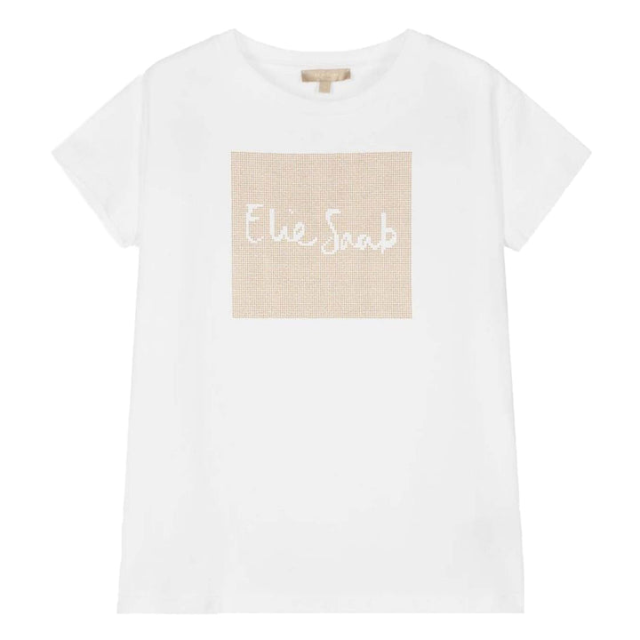 Here’s a White T-shirt for teen girls from Elie Saab, made in soft and lightweight cotton jersey. The front of the top is trimmed with a logo design, made up of gold metal beads. You can dress your baby girl in this dazzling top by pairing it with