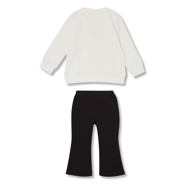 This trendy leggings set features a stylish white and black color combination with a bold logo print for a modern look. Made from a soft cotton blend with added stretch, it ensures comfort, flexibility, and ease of movement perfect for everyday wear or casual outings.