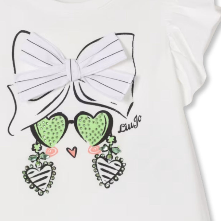 Girls White Bow & Sunglasses Graphic-Print T-Shirt