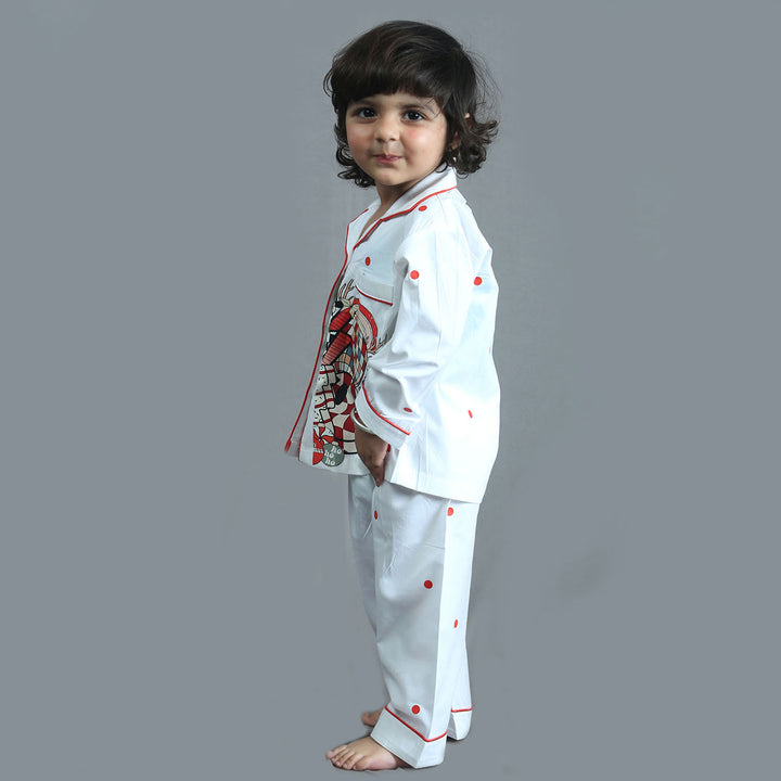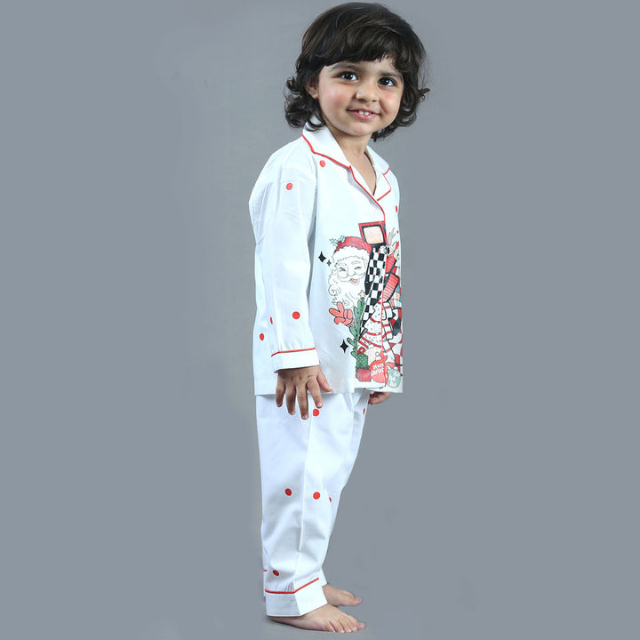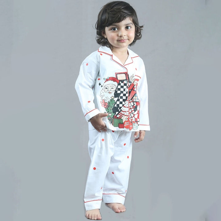 Girls White Christmas Graphic-Print Nightsuit adds a festive and cozy charm with its soft white fabric and cheerful Christmas graphics. Designed for comfort and warmth, it is perfect for relaxing winter nights and joyful holiday mornings.