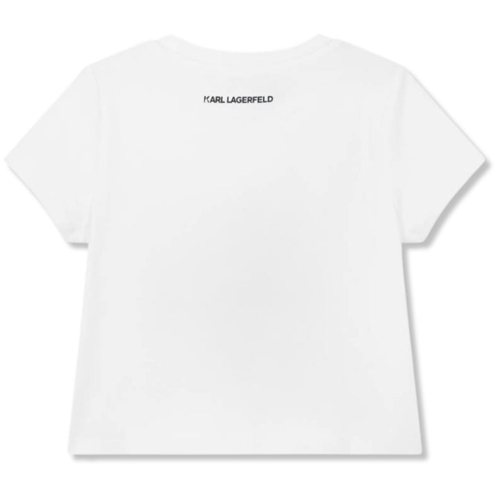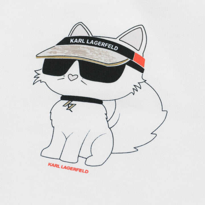 White jersey T-shirt for girls by KARL LAGERFELD KIDS, with the designer beloved Choupette on the front. Super soft and comfortable, this casual tee is made in a blend of organic cotton and modal.