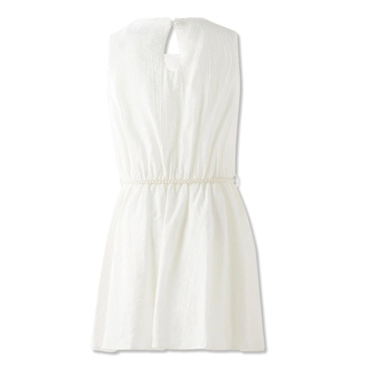 Girls White Rope Belt Dress
