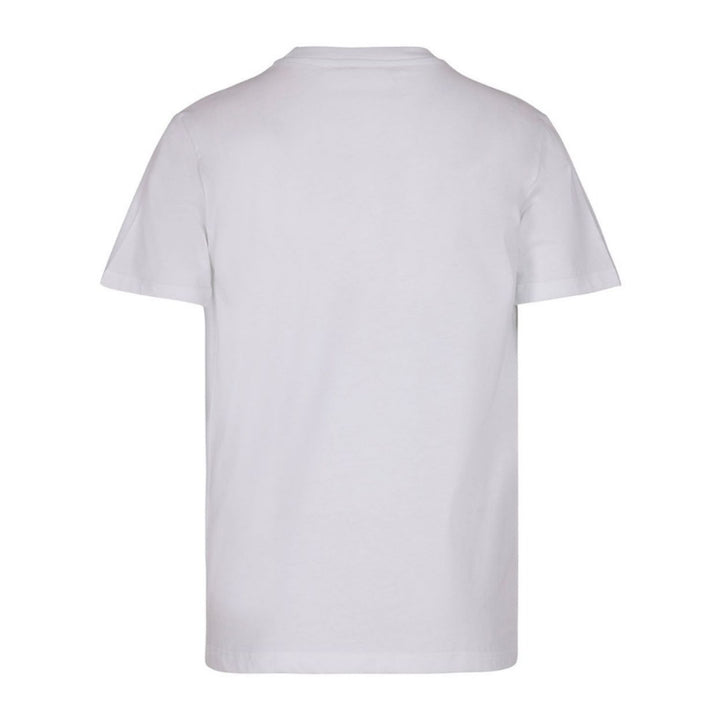 White cotton T-shirt for girls by Italian brand MSGM, with a colourful paint logo printed on the front, embellished with sparkling jewels for a little glamour. It is made in soft jersey for everyday comfort.