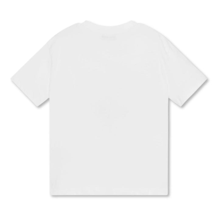 A cool white short-sleeved T-shirt for girls by Italian brand MSGM, made in comfortable cotton jersey. This relaxed fit, crew neck tee has a rainbow-coloured logo on the front with tropical palm tree silhouettes.