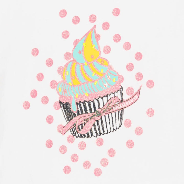 Girls White Cupcake Cotton T-Shirt