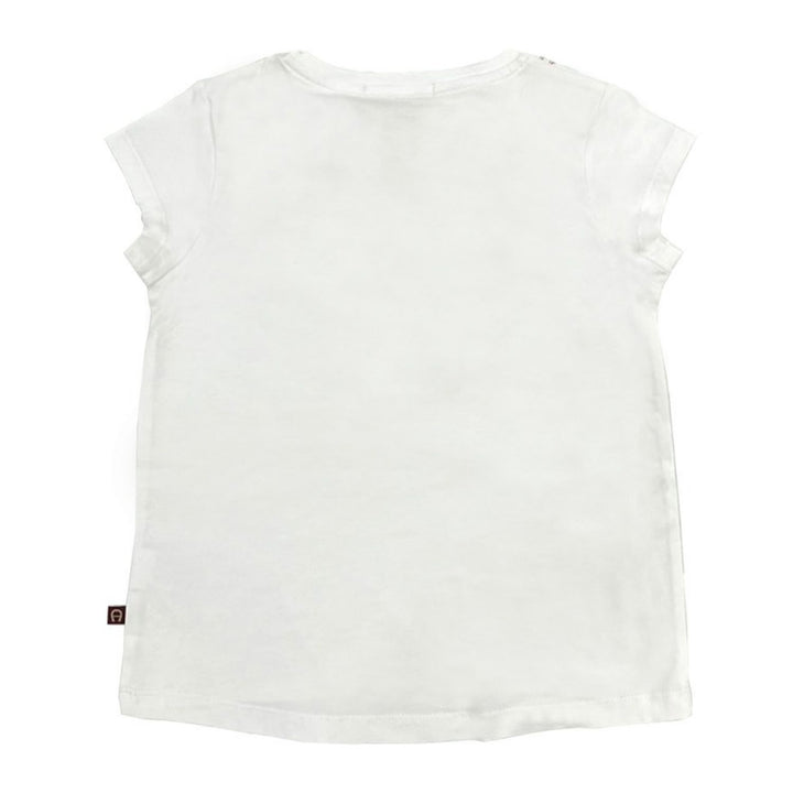 White T-shirt for little girls by German designer AIGNER, made in soft and stretchy cotton jersey. Designed to look like a necklace, this top has a pink chain print, patterned with cute ombr? elephants and the brand's signature 'A' horseshoe logo.