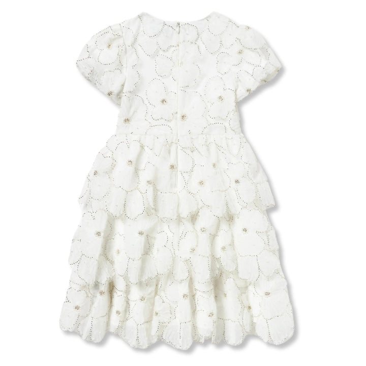 A dream of a dress, charm the mini fashionista with this embellished tulle number which features flower motif detailing. Style its tiered skirt with sparkling ballet flats for flower girl duties.