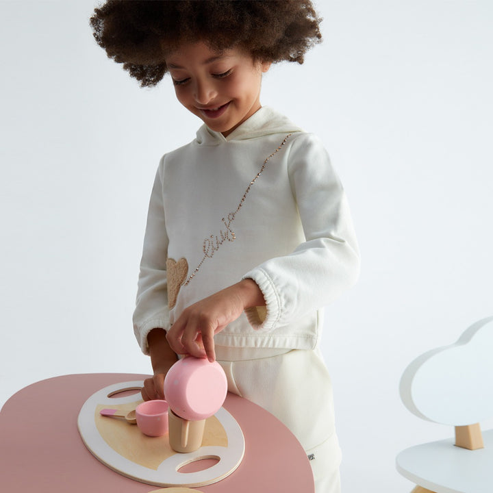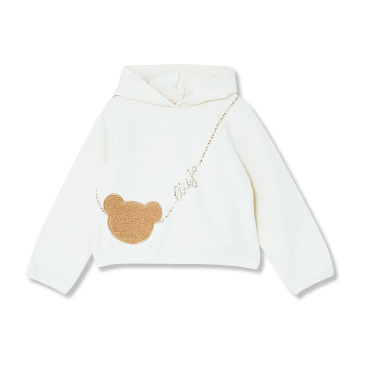 Girls White Embroidered-Bear Rhinestones-Logo Hoodie
