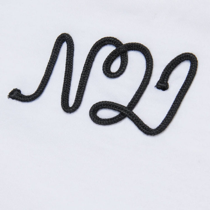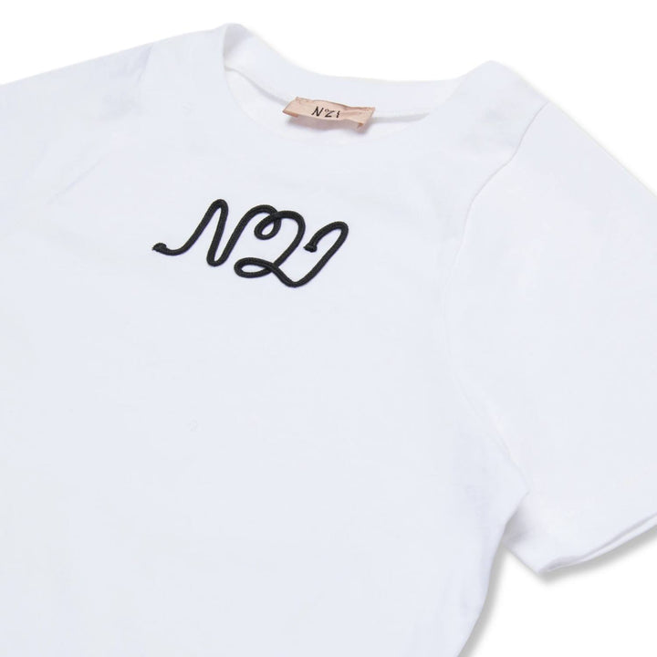 Girls white T-shirt by N21 made from soft cotton with an embroidered logo print simple, stylish and comfortable.