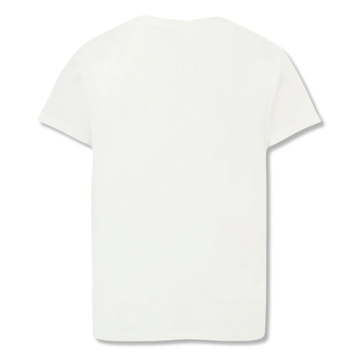 Simple yet sophisticated, this white T-shirt from Pucci is a versatile addition to any young fashionistas wardrobe. Crafted from soft, breathable cotton, it features a classic crew neckline and short sleeves for everyday comfort. The standout detail is the iconic Pucci logo patch at the chest, adding a signature touch of designer flair. Ideal for pairing with jeans, skirts, or shorts for a polished casual look.