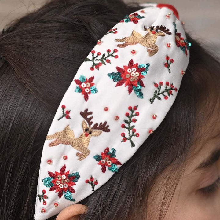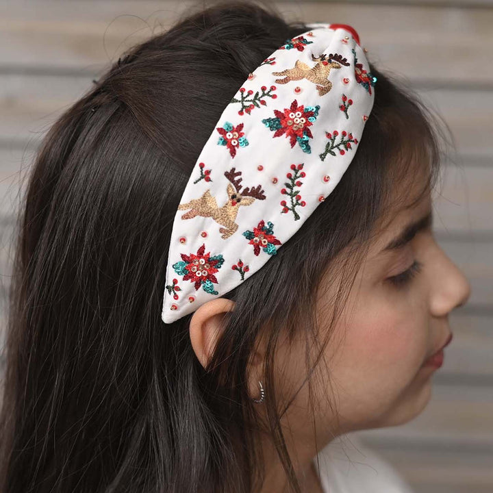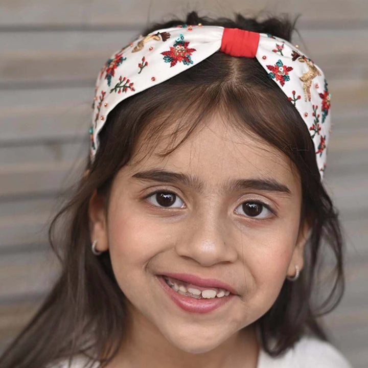 Girls White Embroidered Xmas Headband adds a festive and elegant touch with its delicate embroidery and bright white color. Perfect for holiday parties and celebrations, this comfortable headband keeps her hair in place while bringing a cheerful Christmas charm to her outfit.