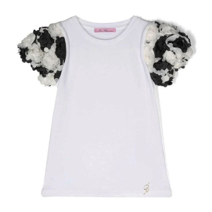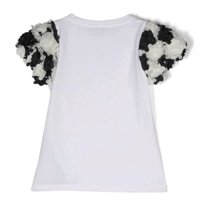 Girls floral-detail cotton T-shirt from MISS BLUMARINE featuring white-black, stretch-cotton, floral detail, straight hem, round neck and short sleeves.