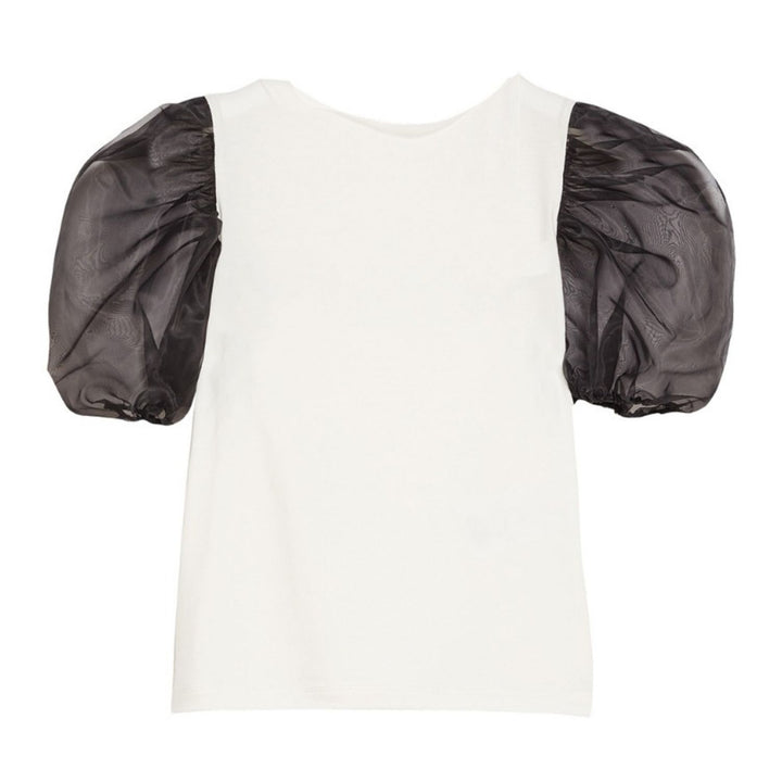 Girls floral-detail cotton T-shirt from MISS BLUMARINE featuring white-black, stretch-cotton, floral detail, straight hem, round neck and short sleeves.