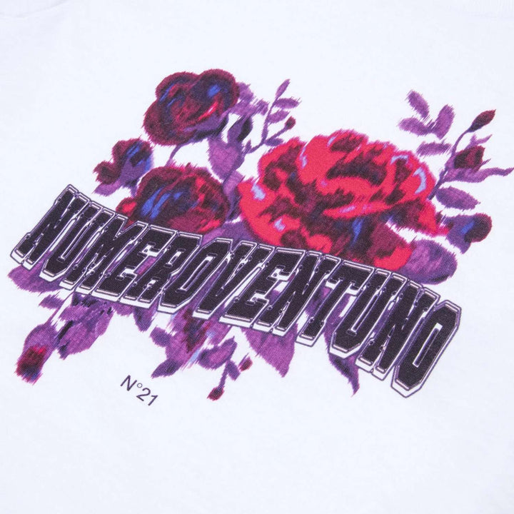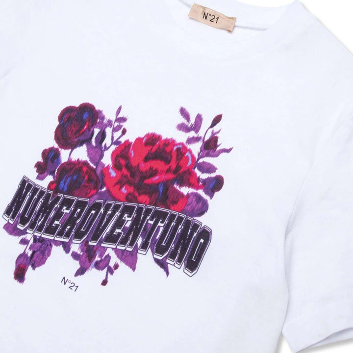 Girls white cotton T-shirt by N21 featuring a bold front graphic print and a classic crew neckline perfect for casual stylish looks.