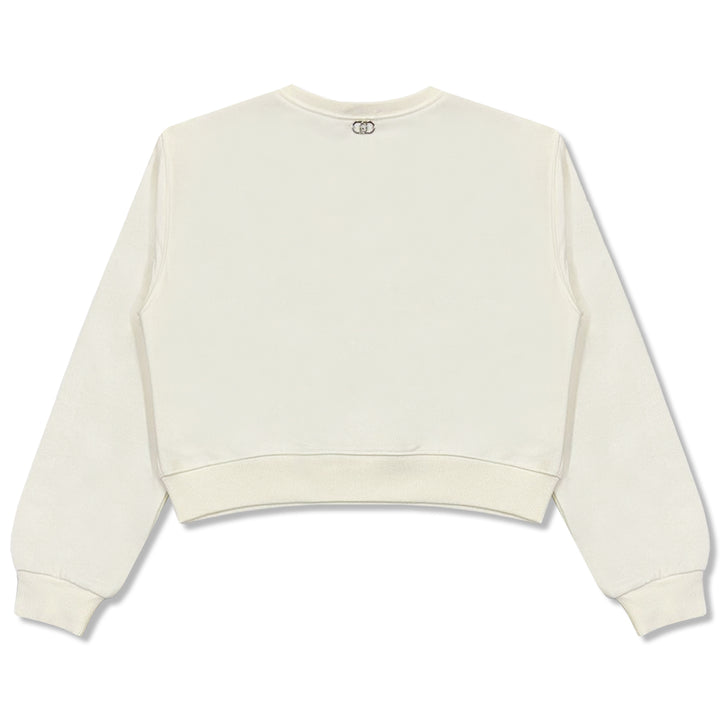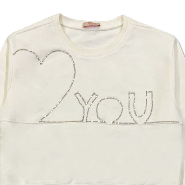 This chic white sweatshirt features a sparkling rhinestone 2 You and heart motif across the front, adding a stylish and playful touch. Crafted from soft cotton-blend fabric, it offers warmth and comfort, making it perfect for casual outings or cozy d