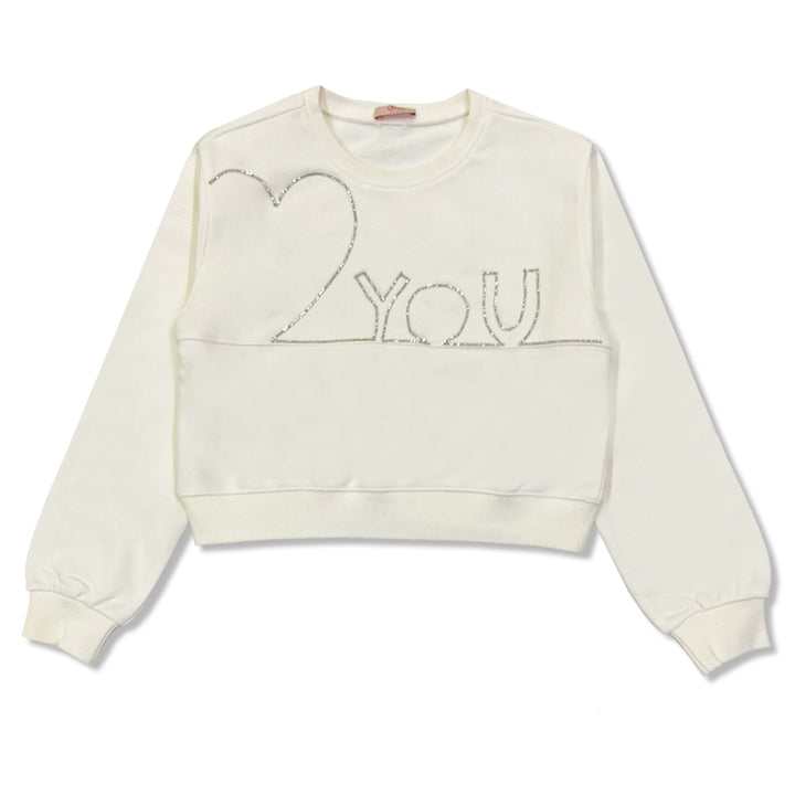 Girls White Heart 2 You Rhinestone Sweatshirts