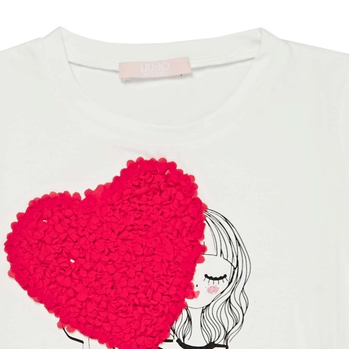 Girls White Heart Patch Cotton T-Shirt