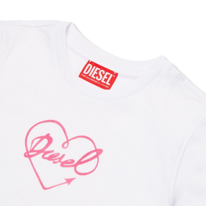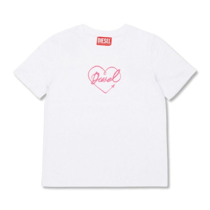 Girls White Heart-Print Cotton T-shirt