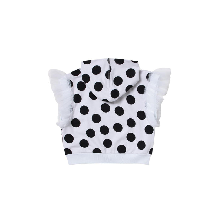 Girls White Jerry Tulle Sleeve Polka Dot Hoodie