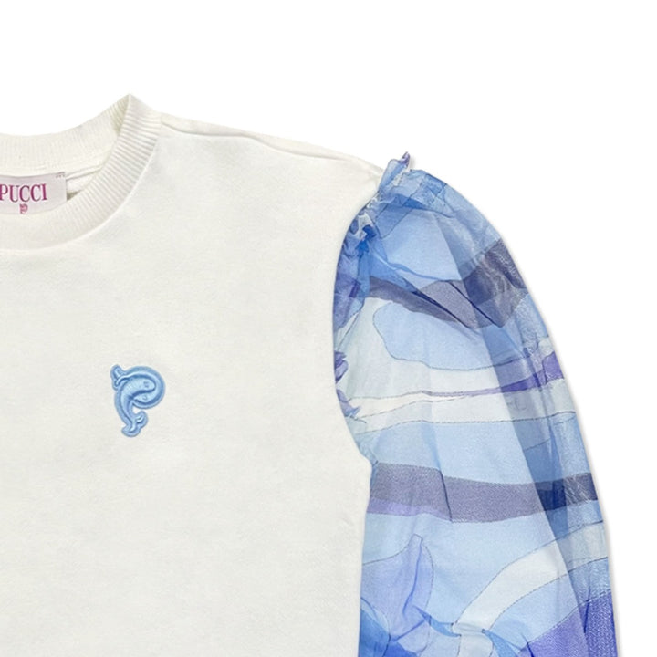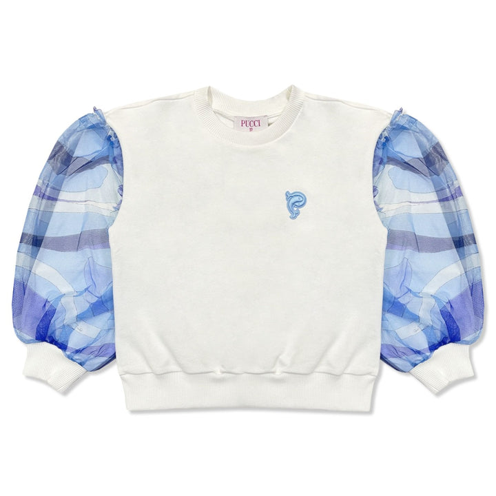 Effortlessly chic, this white sweatshirt from Pucci brings a stylish twist to everyday wear. Crafted from soft cotton, it features voluminous puff sleeves that add a playful, feminine touch. A standout logo patch at the chest highlights the brands iconic identity, while the ribbed trims offer a snug and comfortable fit. Perfect for layering or wearing solo, this piece blends casual comfort with refined elegance.