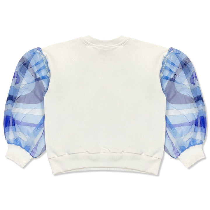 Girls White Logo-Embroied Puff-Sleeve Sweatshirt