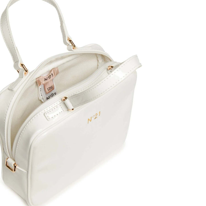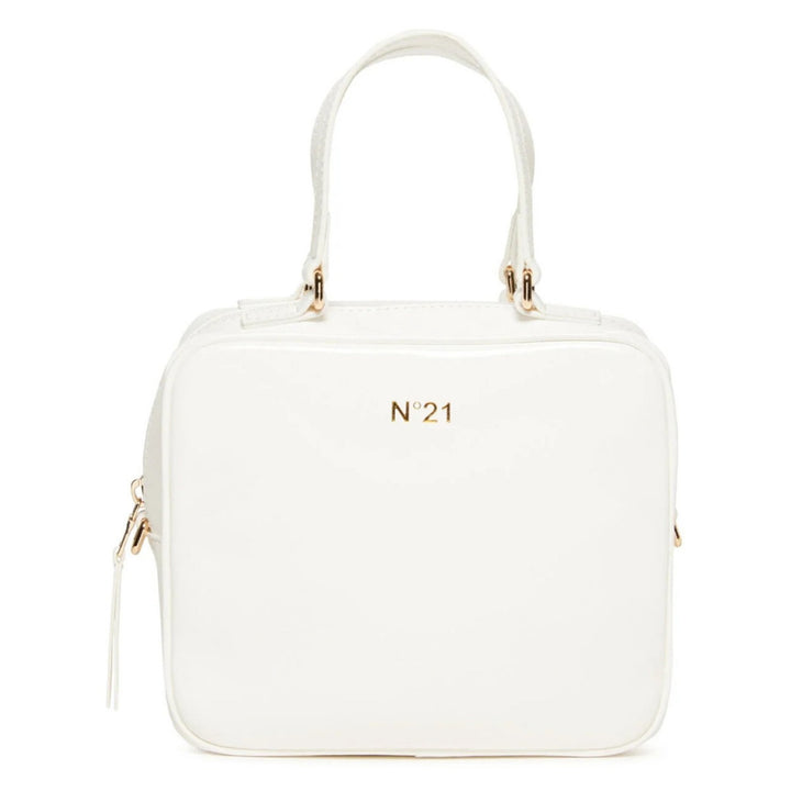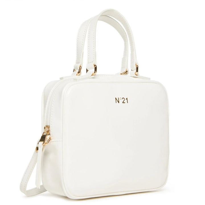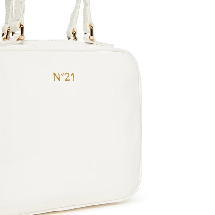 Satchel-shaped bag. Zip closure. Golden details. N21 Institutional logo on one side. Hand-held and cross-body. Adjustable and removable shoulder strap. Inner canvas lining.