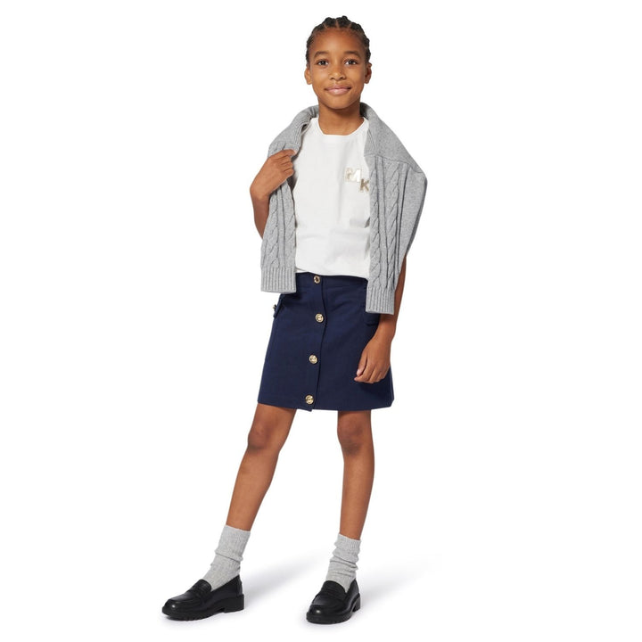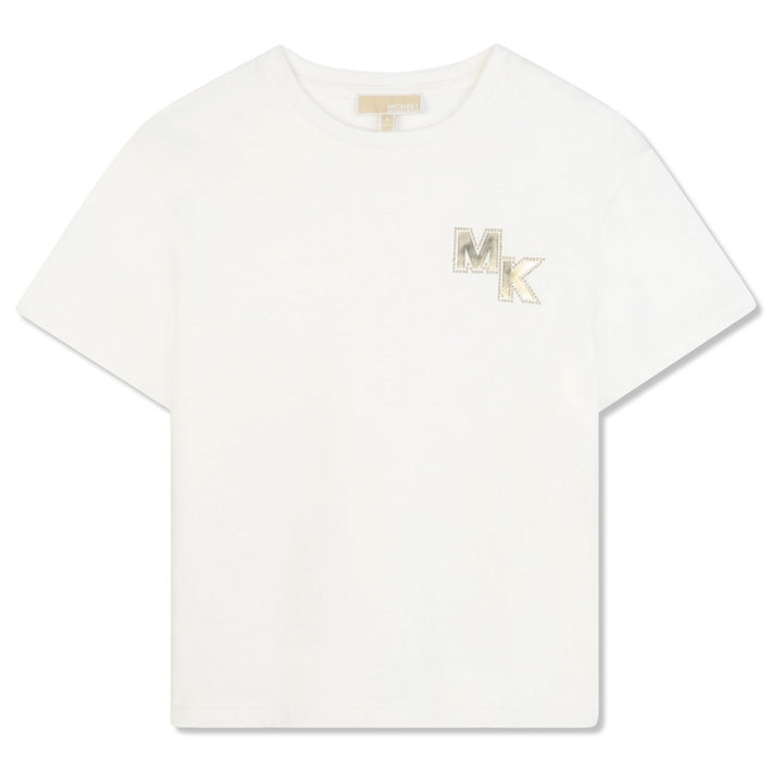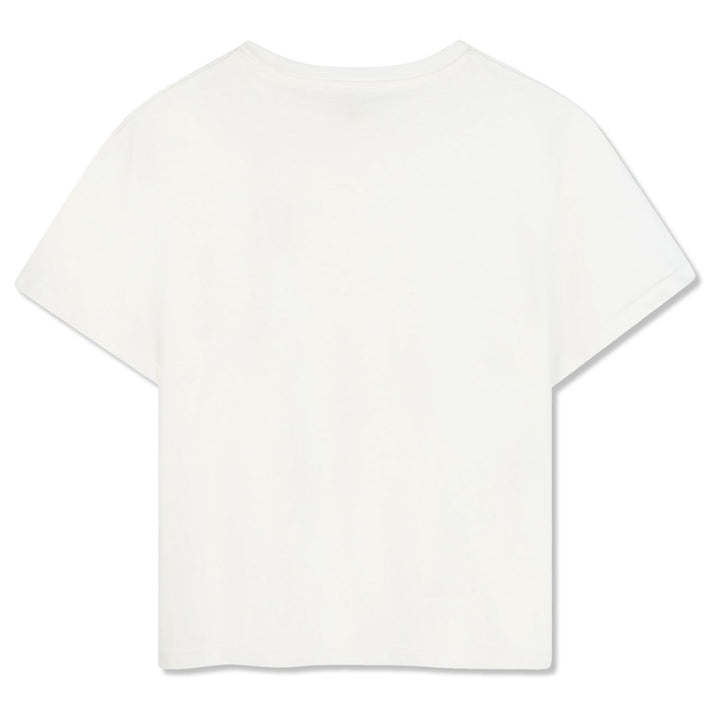 Keep it simple and stylish with this Girls White Logo-Patch T-Shirt. Made from soft, breathable cotton, it ensures all-day comfort and a relaxed fit. The subtle logo patch on the front adds a modern, trendy touch, making it perfect for pairing with j