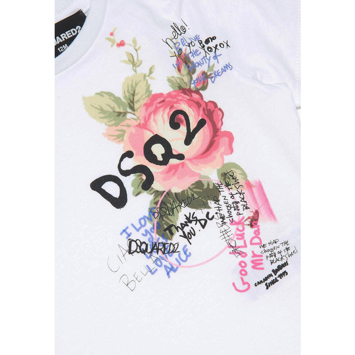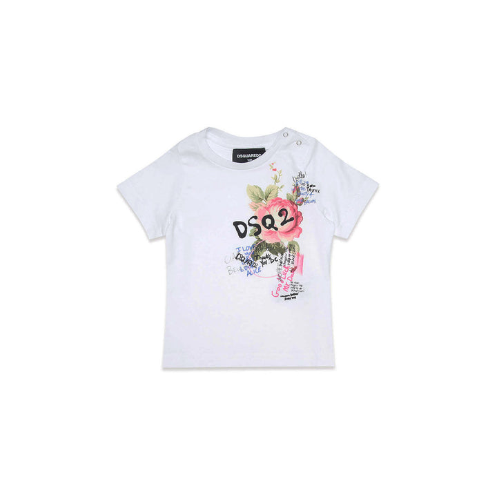 Girls White Logo Print Cotton T-Shirt Made by Dsquared2,crewneck,snap Button Closure On The Left Shoulder,short Sleeves,print On The Front.