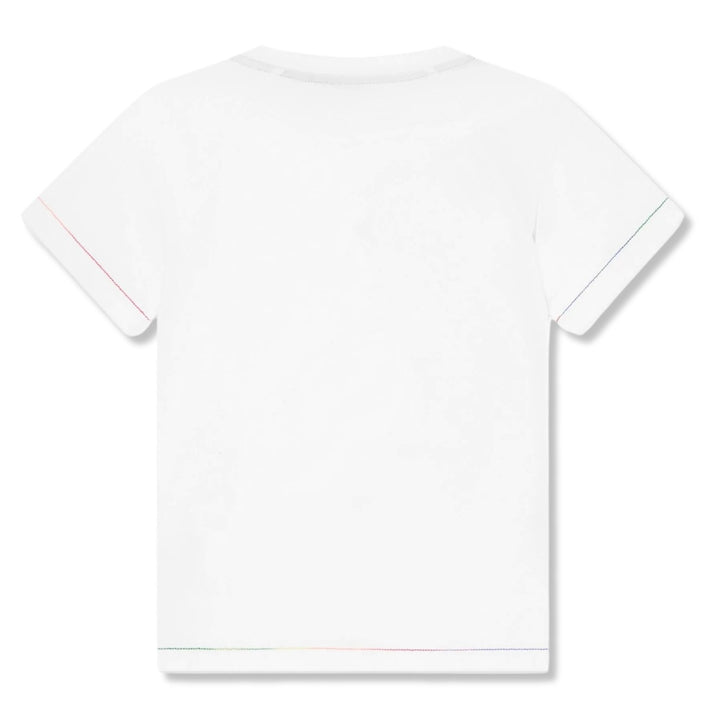 Give your child's wardrobe a stylish upgrade with this Missoni Kids t-shirt. Crafted from high-quality cotton, this classic white tee features a signature zigzag embroidery in a vibrant gradient of colors, adding a playful yet refined touch. The rolled-up sleeves enhance its casual appeal, while the subtle Missoni logo at the bottom completes the designer aesthetic. Perfect for everyday wear or special outings, this t-shirt embodies Missoni's iconic craftsmanship and timeless elegance.