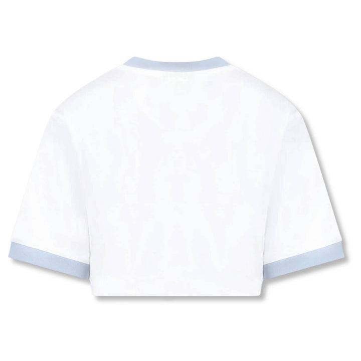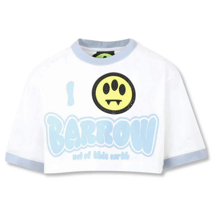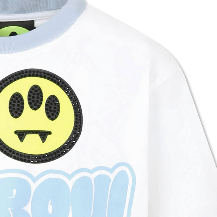 Barrow Kids Logo-Print Top in white with a front logo design, crew neck, and short sleeves. Made from 1% cotton for a soft, comfortable fit.