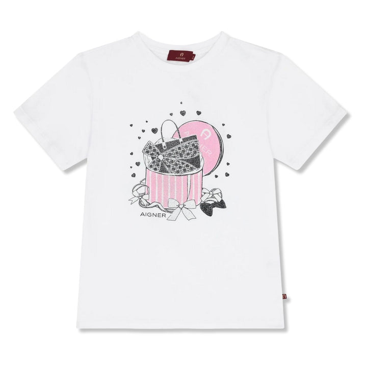 Girls White Logo-Print T-Shirts