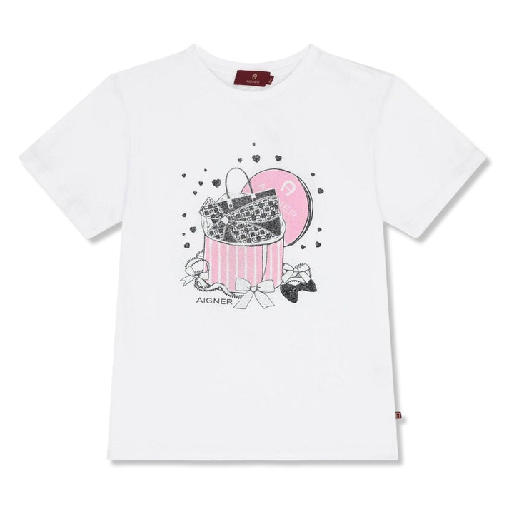 A versatile wardrobe essential, this white logo-print T-shirt is designed for comfort and style. Made from a soft cotton blend with a hint of stretch, it features a sleek branded print that s perfect for everyday wear or layering under jackets and cardigans.