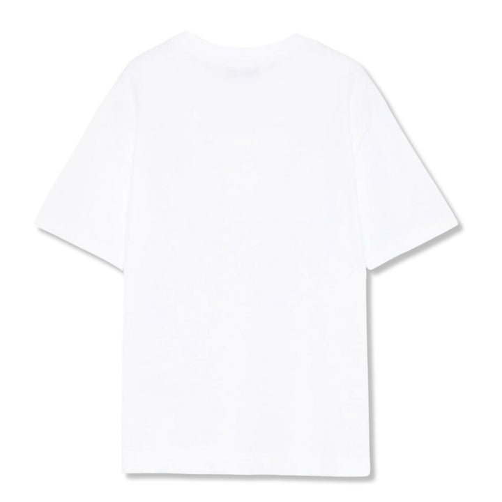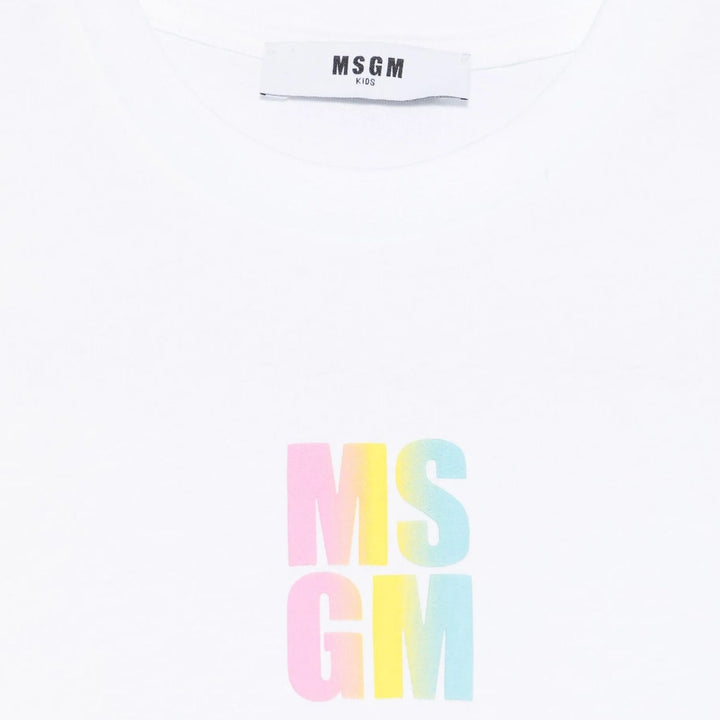 Bright and stylish, this White jersey T-shirt from MSGM Kids adds a playful pop of color to any outfit. Made in Italy from 1% cotton, it features sleek logo-tape detailing along the sleeves, a classic crew neck, and short sleeves for a relaxed fit. P