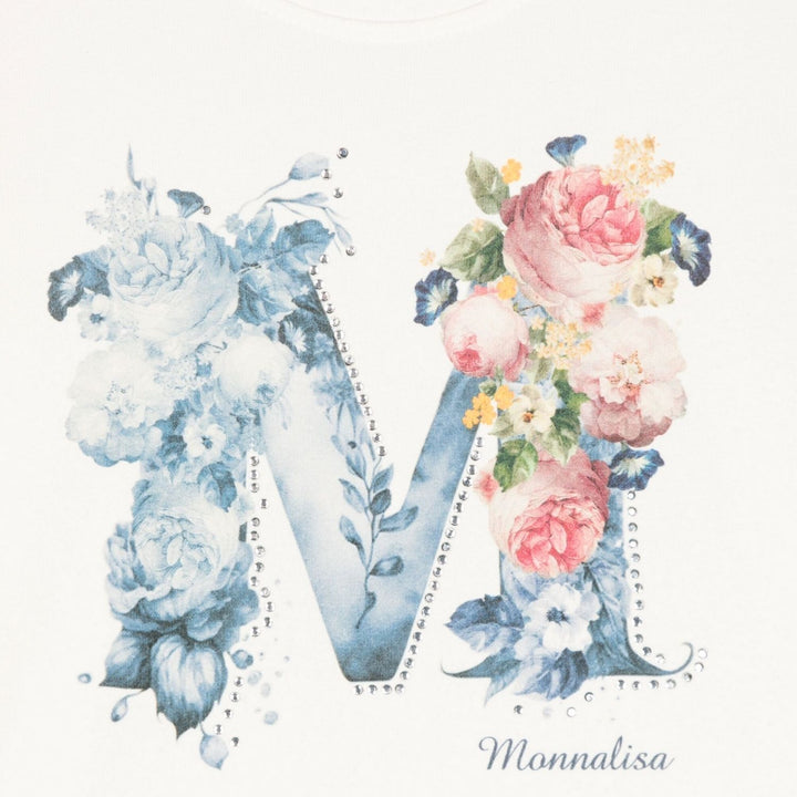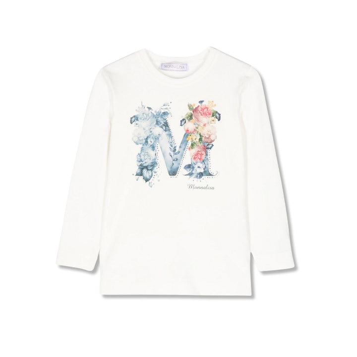 Girls White M Floral-Print Full-Sleeves T-shirt