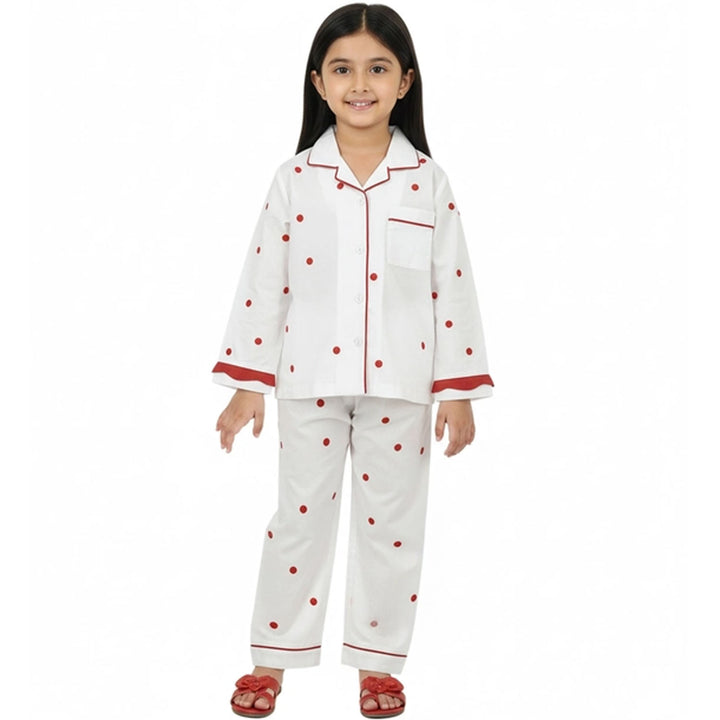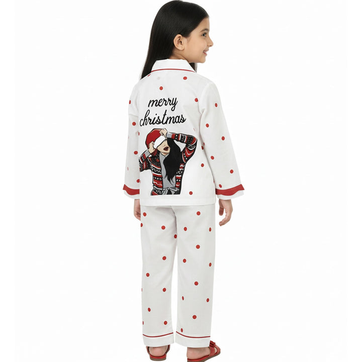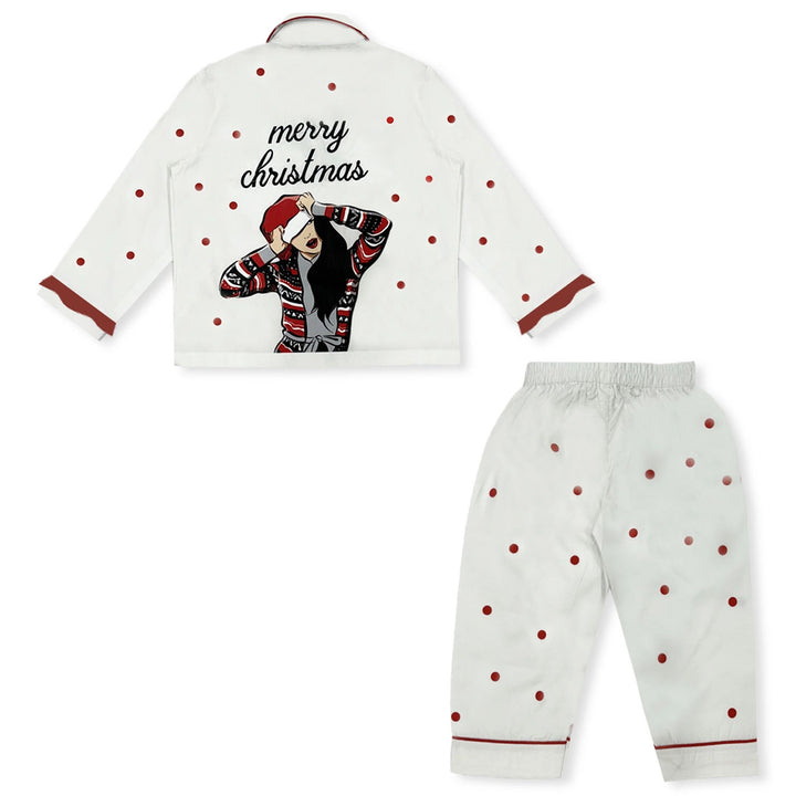 Girls White Merry Christmas Nightsuit adds cozy festive charm with soft white fabric and cheerful Christmas print. Designed for comfort and warmth, it is perfect for bedtime during the holiday season, making her nights merry, bright, and comfortable.