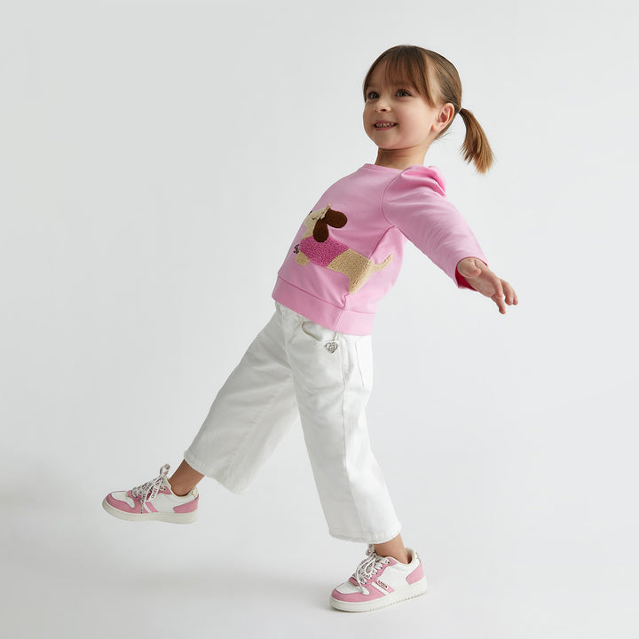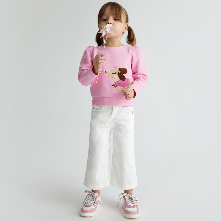 Stretch cotton blend trousers, high-waisted, with flared leg, five-pocket model, with button and hidden zip fastening and metal heart with L J logo on the side. For a trendy and casual look