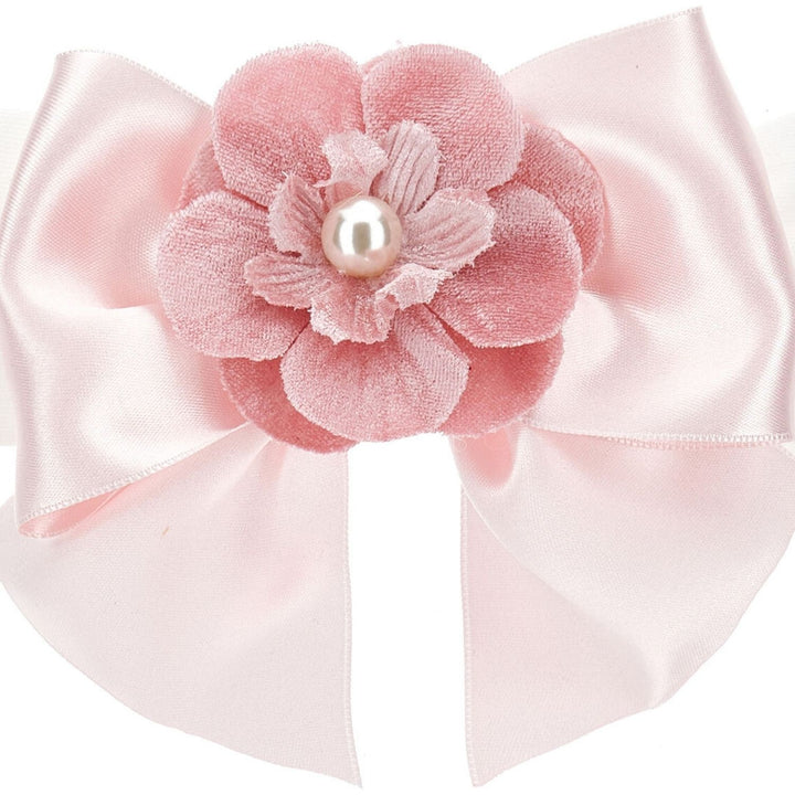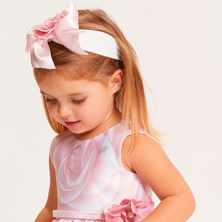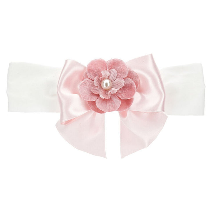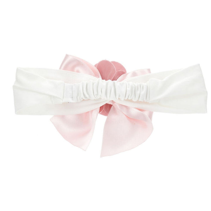 A cute pink and white headband for girls, decorated with a sweet bow patch. Soft, stylish, and comfortable—this Monnalisa accessory adds a playful finishing touch to any outfit.