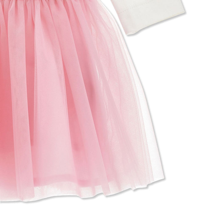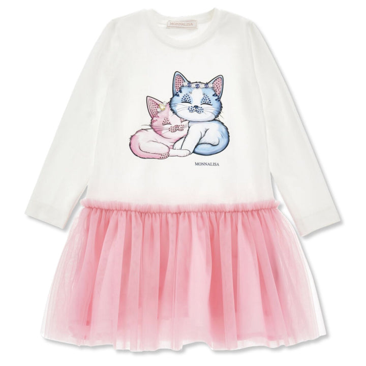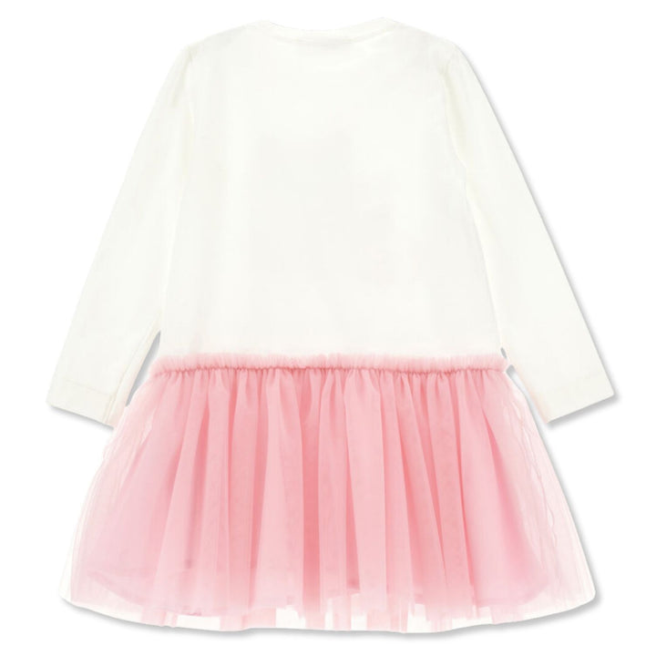 A charming white & pink dress with playful frill details and Monnalisa’s signature logo print — the perfect mix of elegance and fun for little fashionistas.