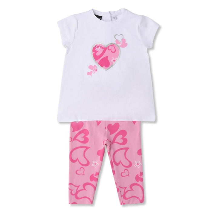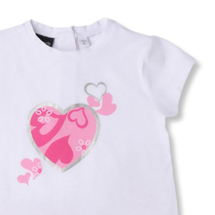 Sarabanda Girls White & Pink Graphic-Print Co-ord Set made from 95% cotton and 5% elastane, soft, stretchy, and perfect for all-day comfort.
