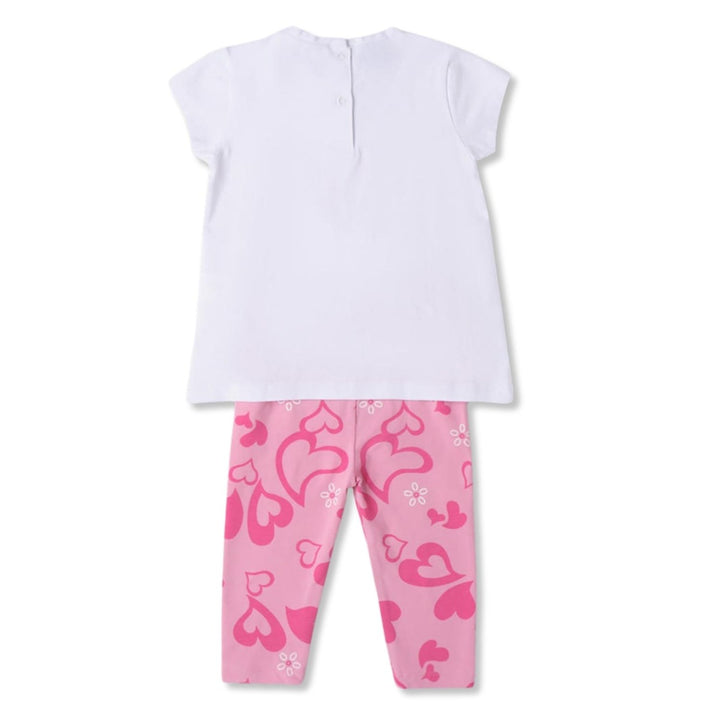 Girls White & Pink Graphic-Print Co-ord Sets