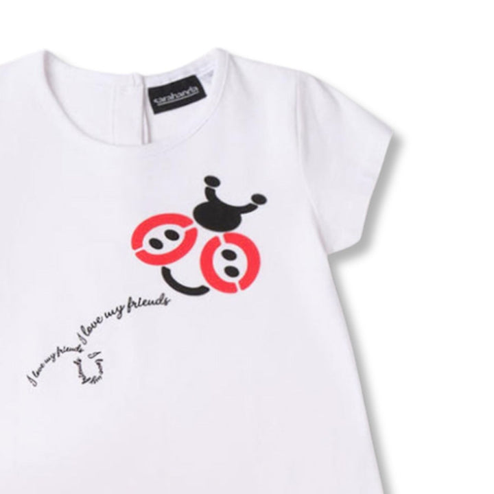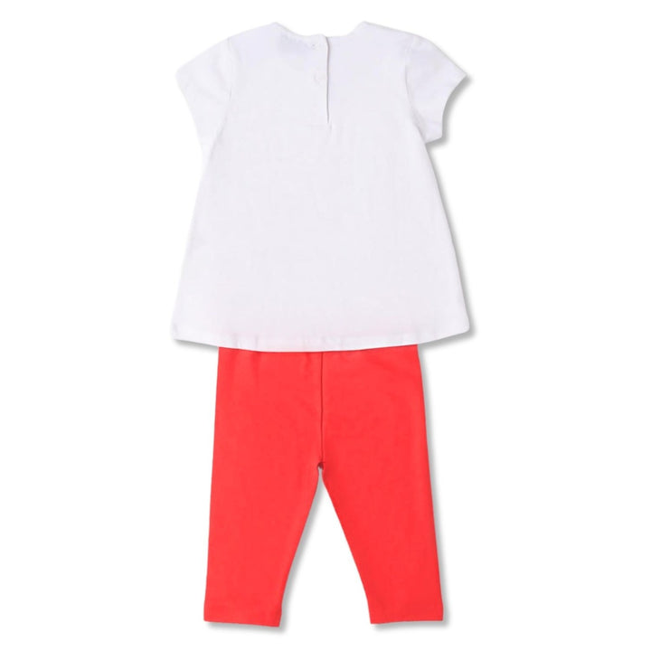 Sarabanda Girls White & Red Slogan-Print Co-ord Set made from 95% cotton and 5% elastane, soft and stylish for everyday comfort.