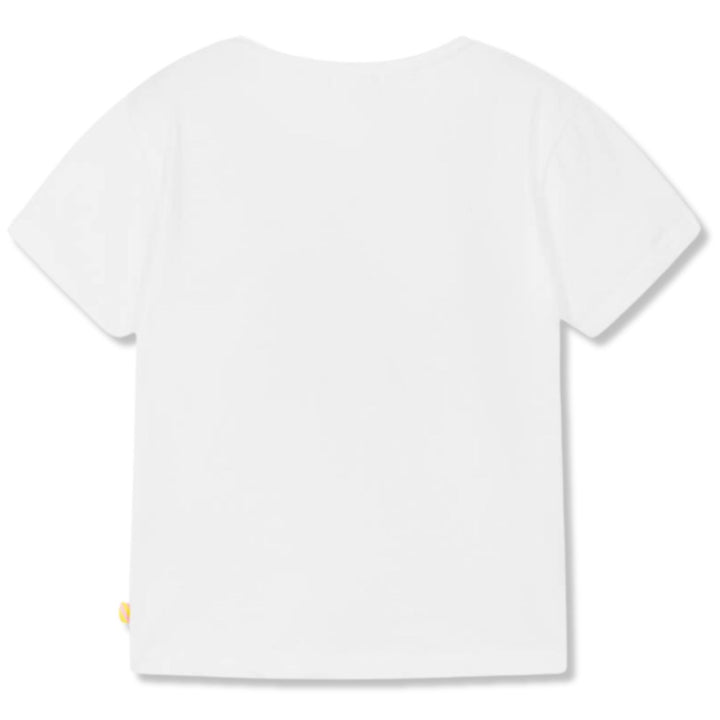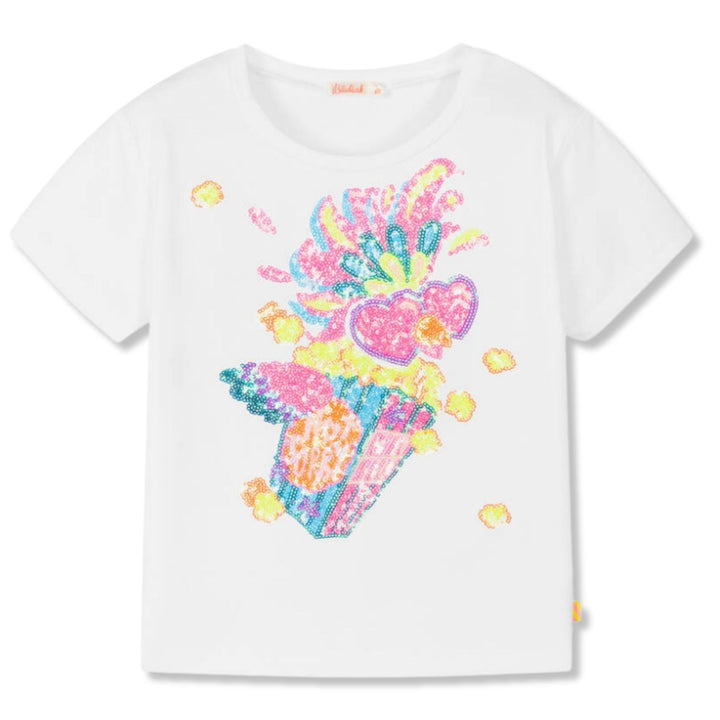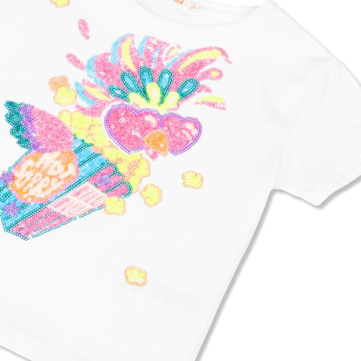 White T-shirt for girls by Billieblush, made in soft cotton jersey. This eye-catching design has a playful pink character on the front in colourful, sparkly sequins.
