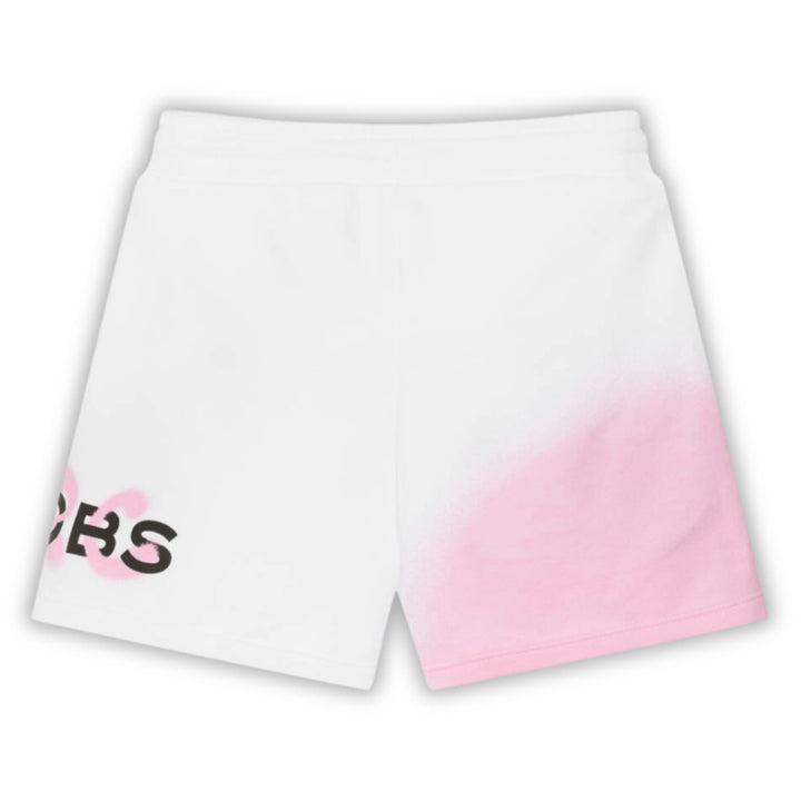 Casual white shorts for girls by MARC JACOBS, made from a mid-weight organic cotton blend. Easy to pair with tees and hoodies, these jersey shorts are printed with pink spots in an oversized scale and finished with a black and pink spray paint logo o