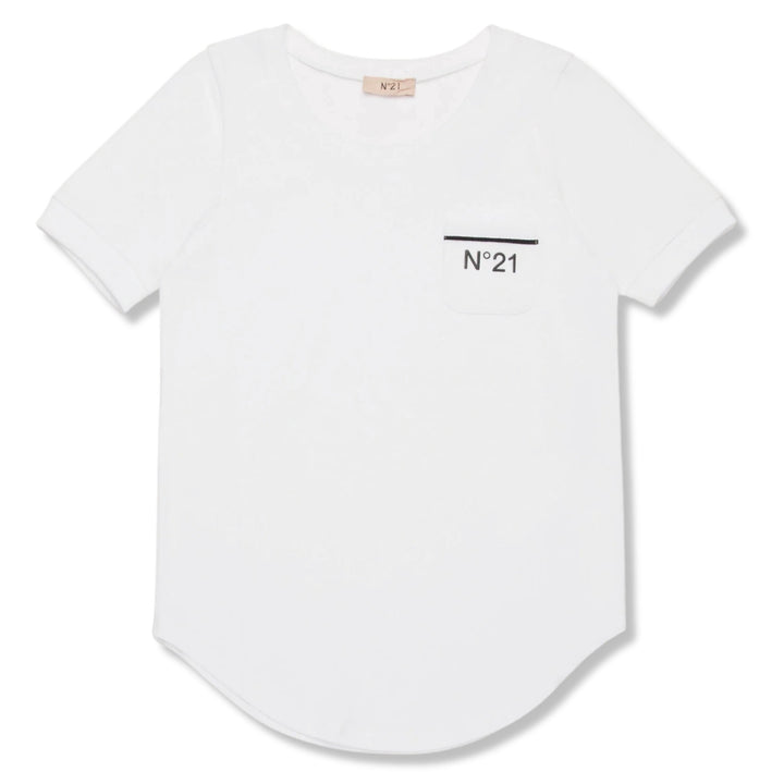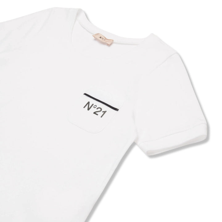 Short-sleeved crew-neck T-shirt in jersey. Heart-side pocket with branded N21 logo in contrasting color. Rounded hem. Made of 1% cotton.