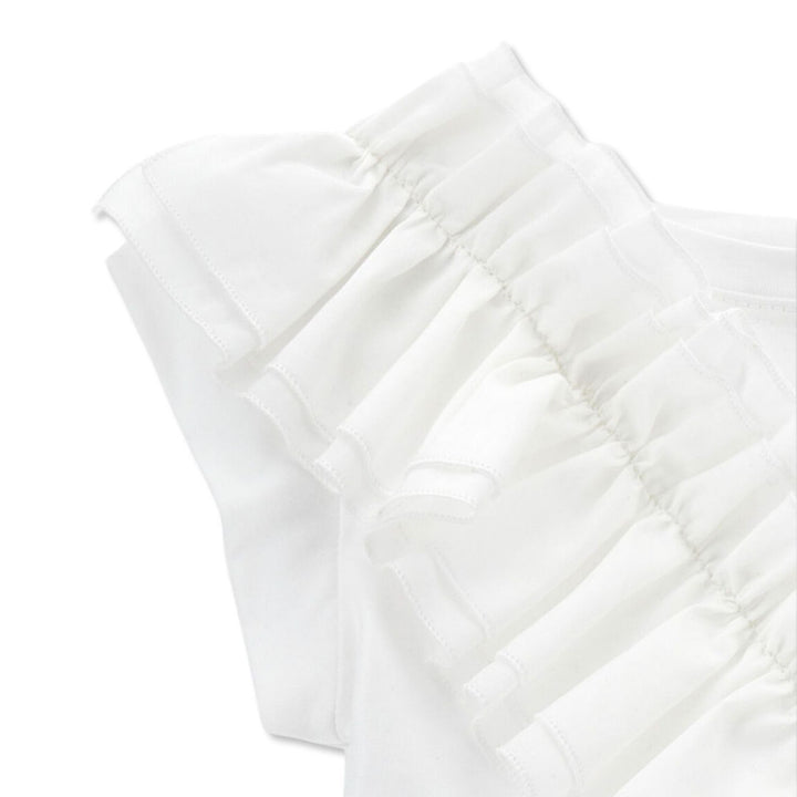 An evergreen, the top proposed in a fresh and crease-free fabric, with a rich application that crosses it obliquely.