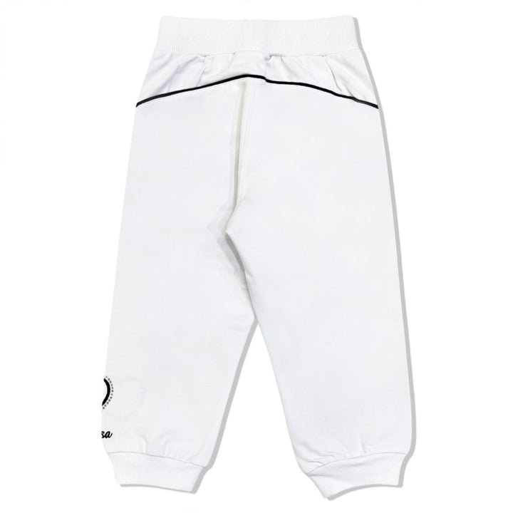 Essential for the wardrobe, even for the little ones, the practical tracksuit trousers in a fashion version, with profile and logo heart